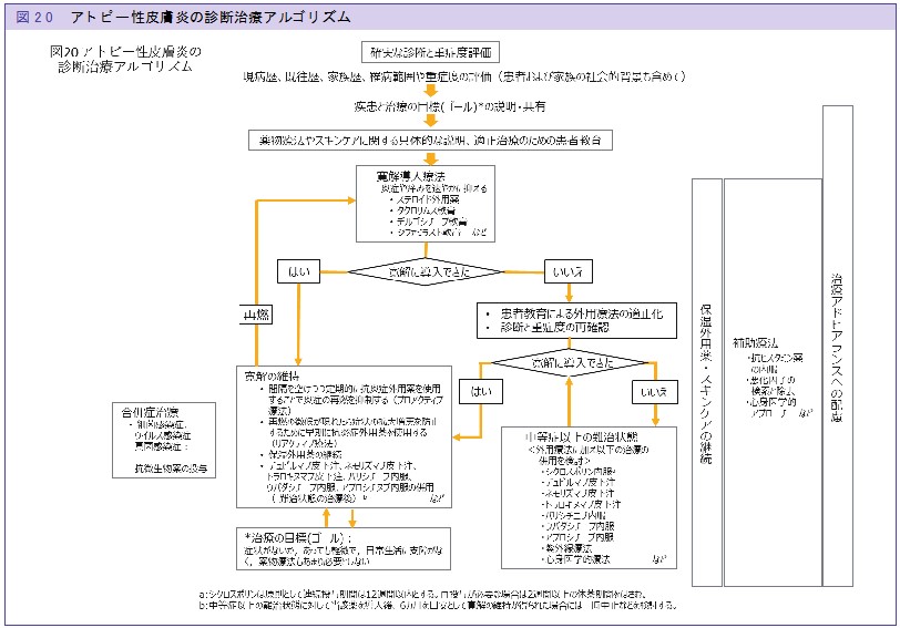 上記の状態を改善するために、アトピー性皮膚炎の診断治療アルゴリズムが掲載されている