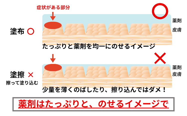 アトピー性皮膚炎の外用剤の塗り方のイメージです。